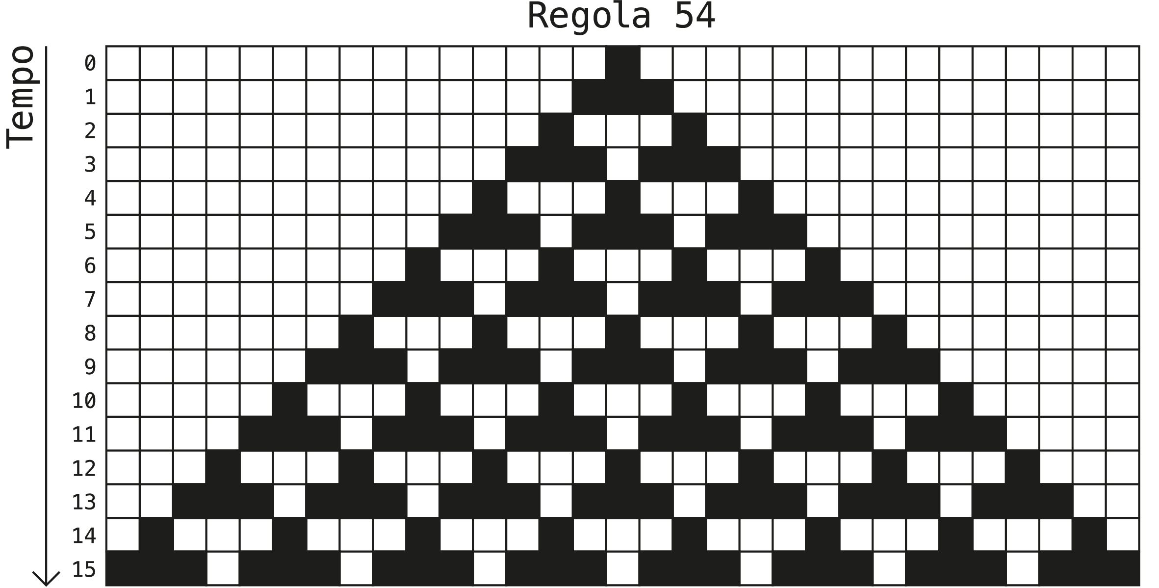 Se visualizziamo un automa cellulare 1D come una griglia 2D in cui l'asse orizzontale